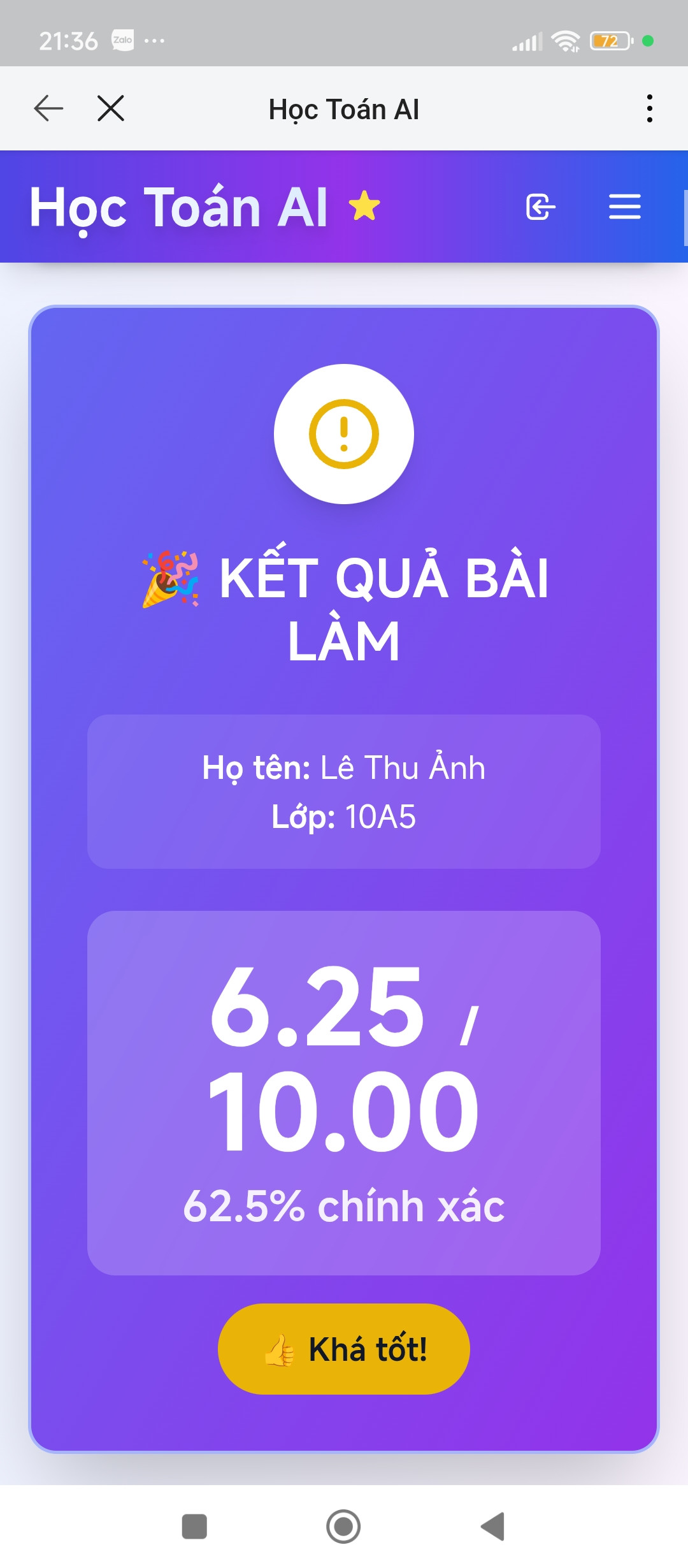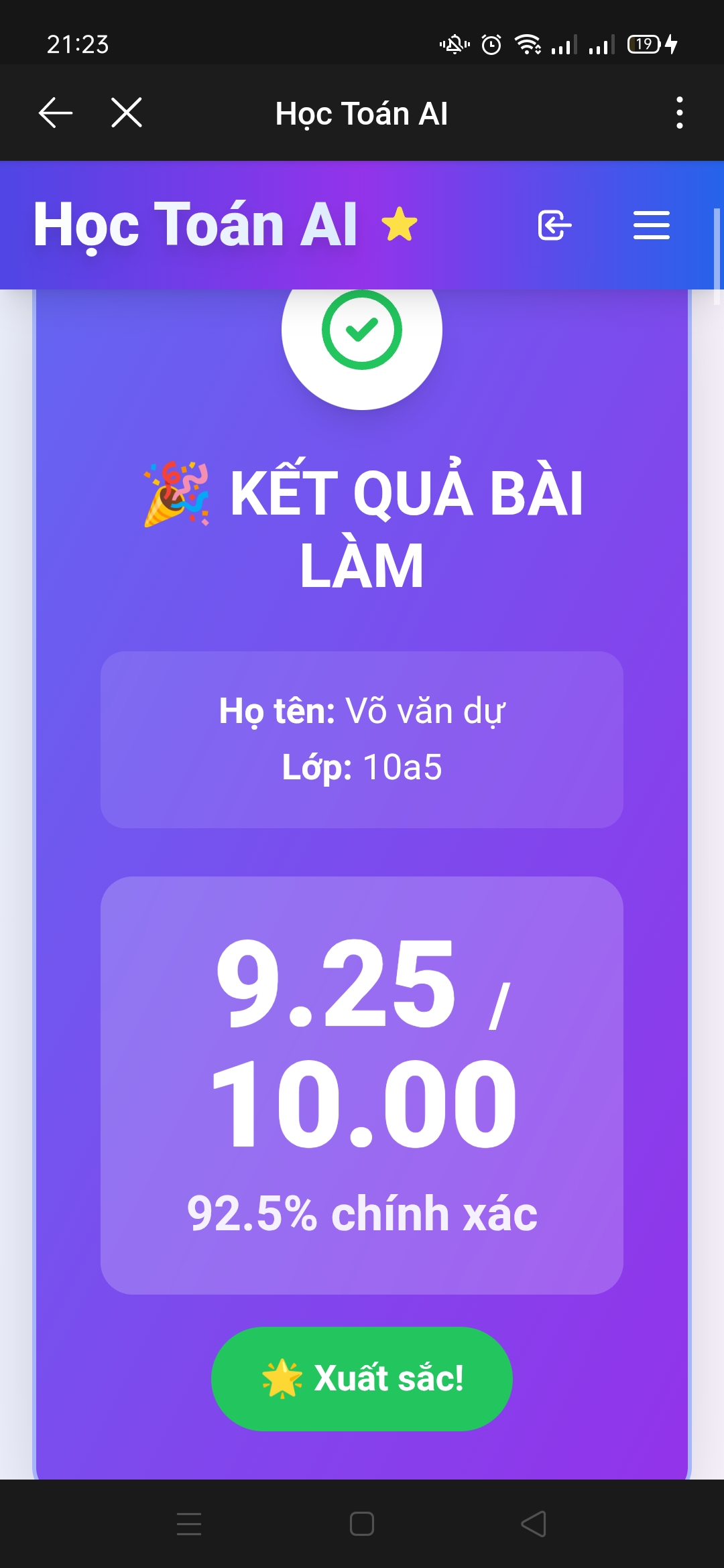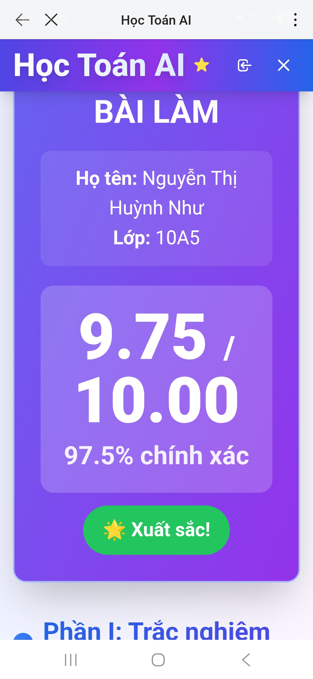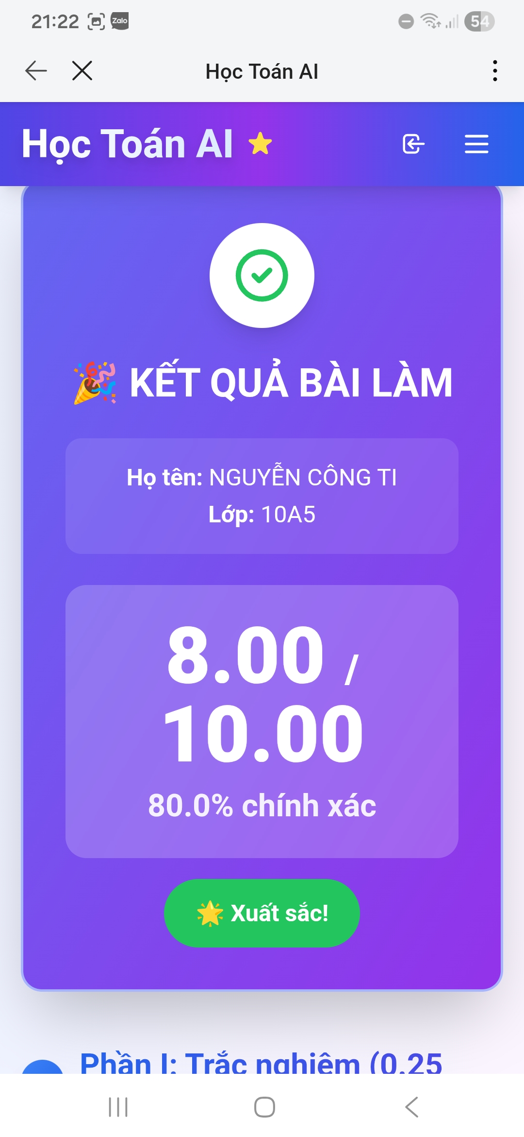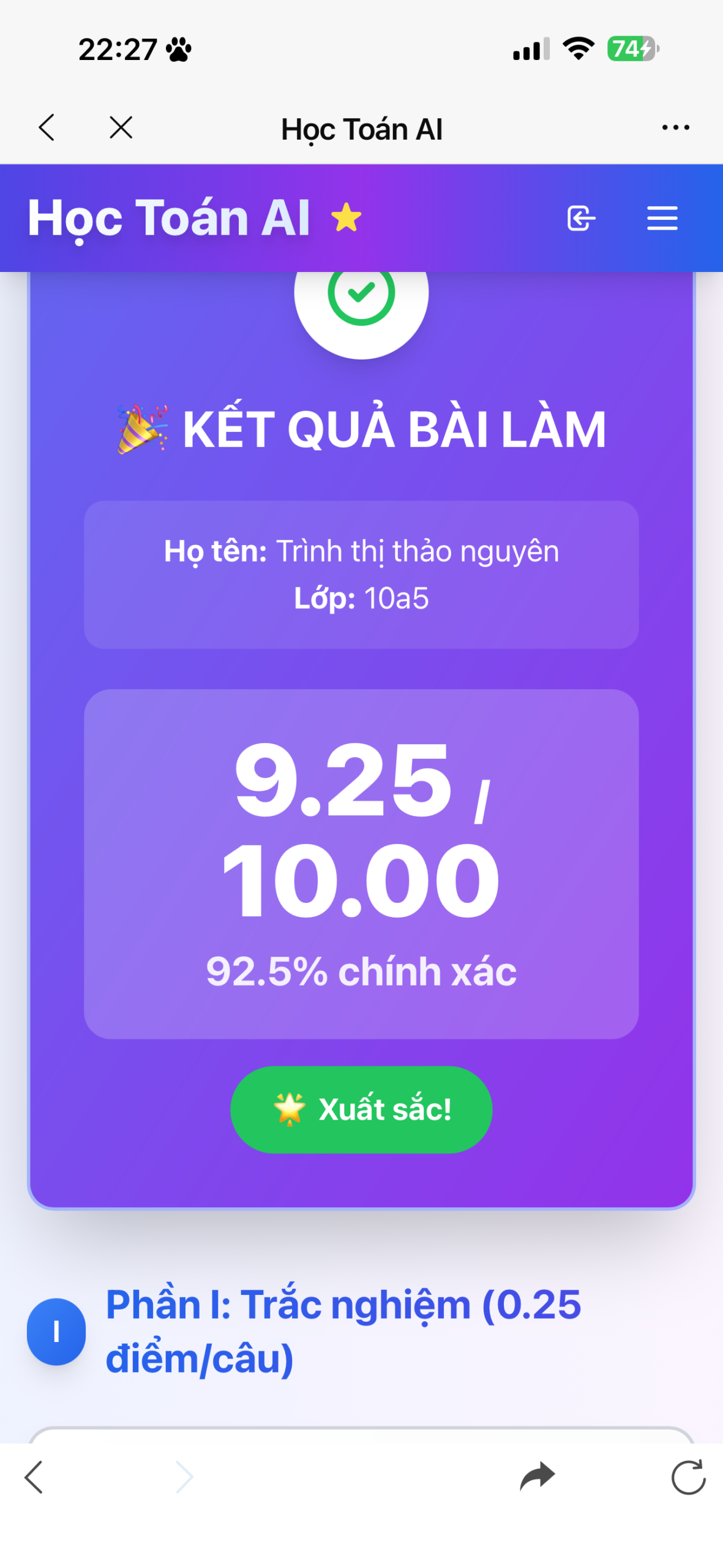 • Kết quả bài thi
