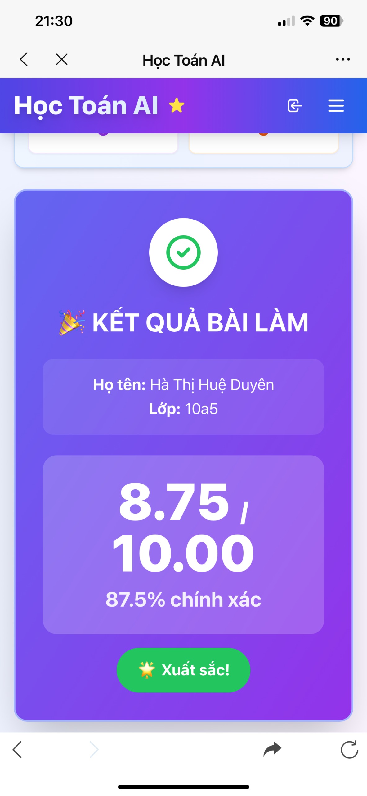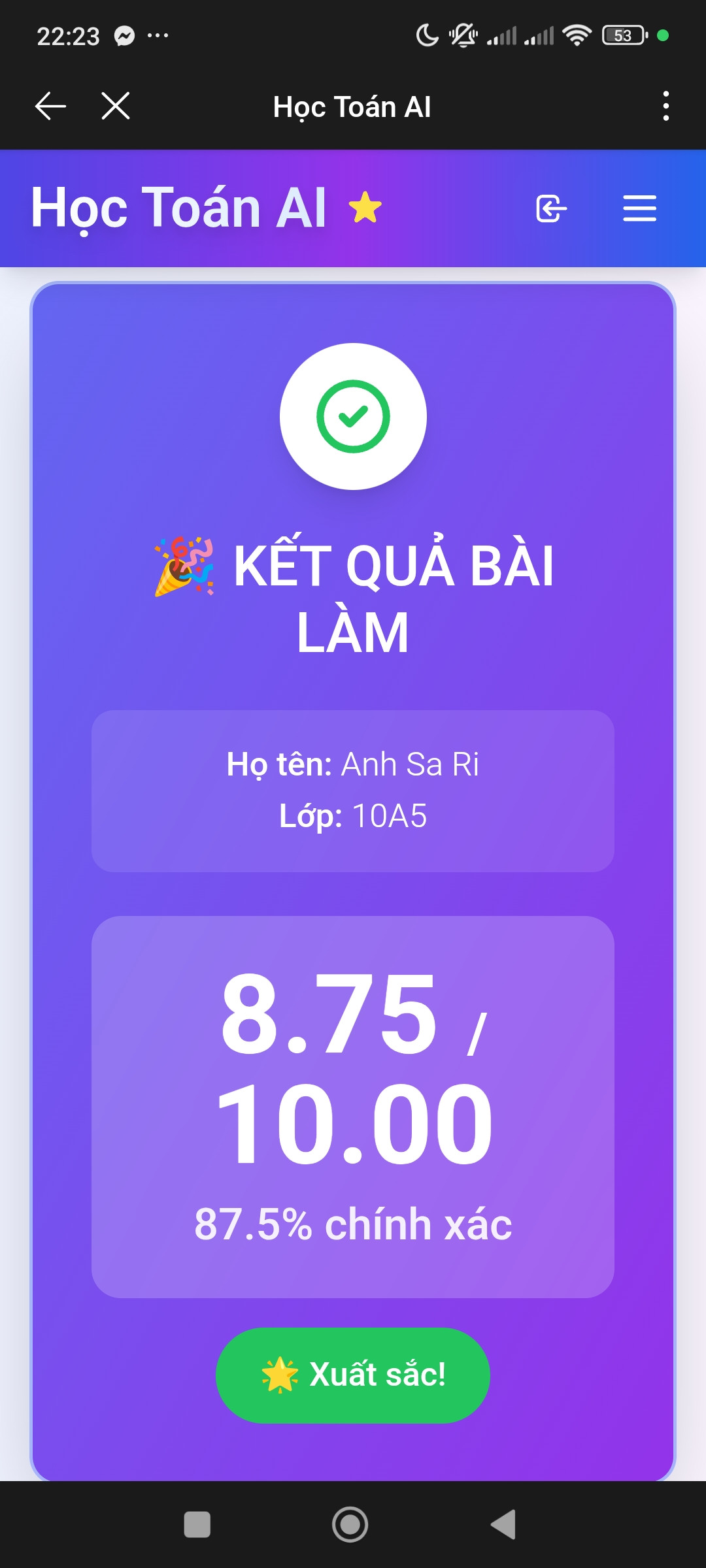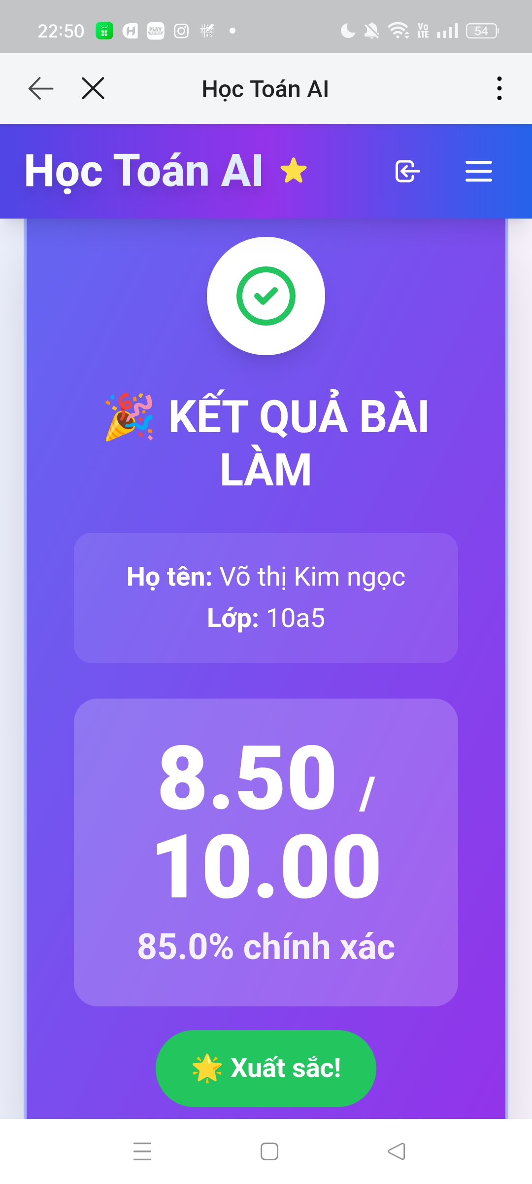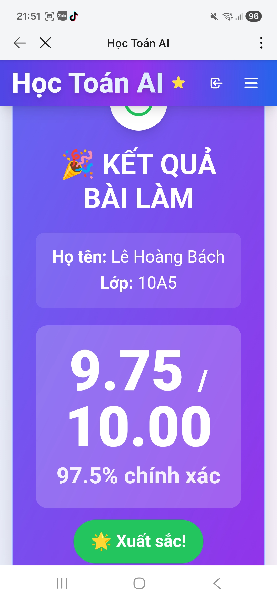 Kết quả Kiểm tra online toán 10