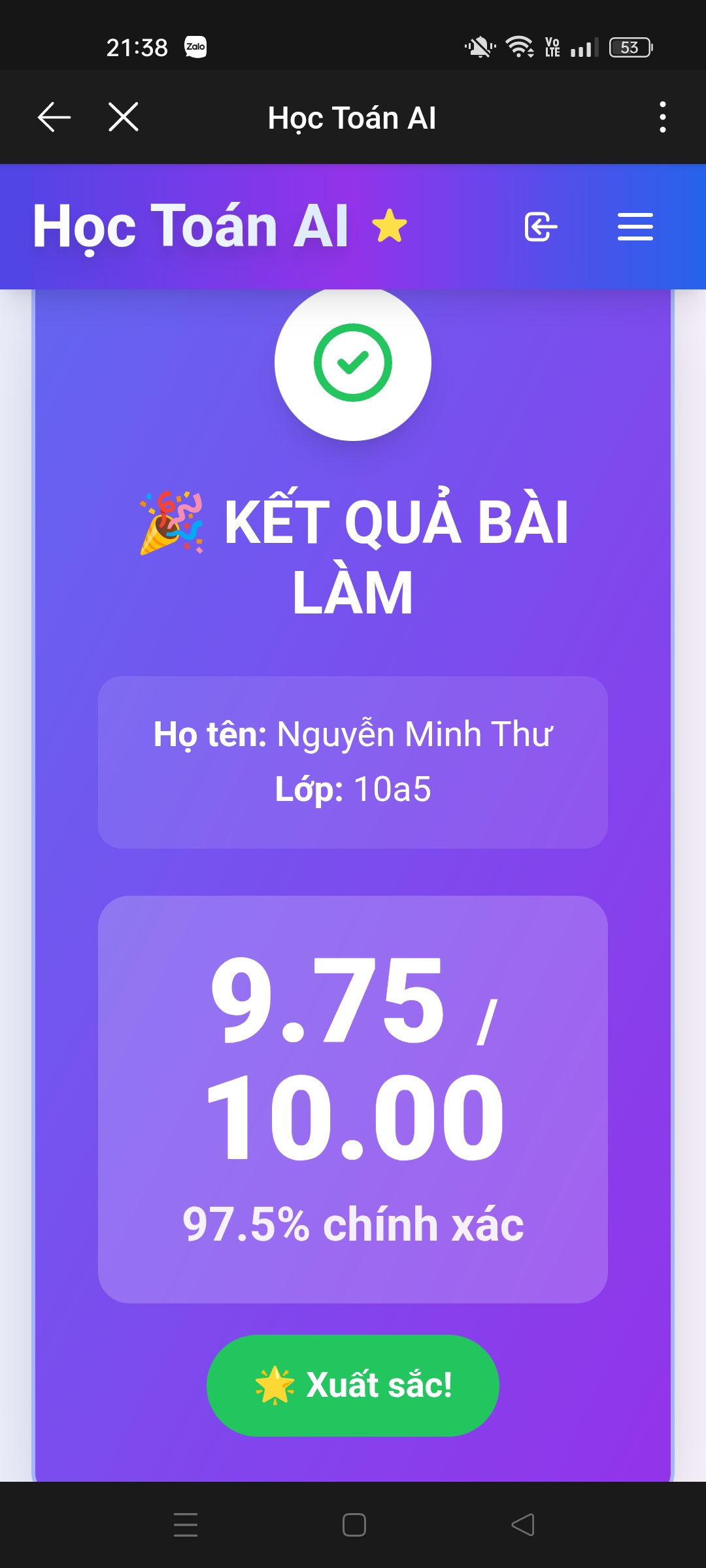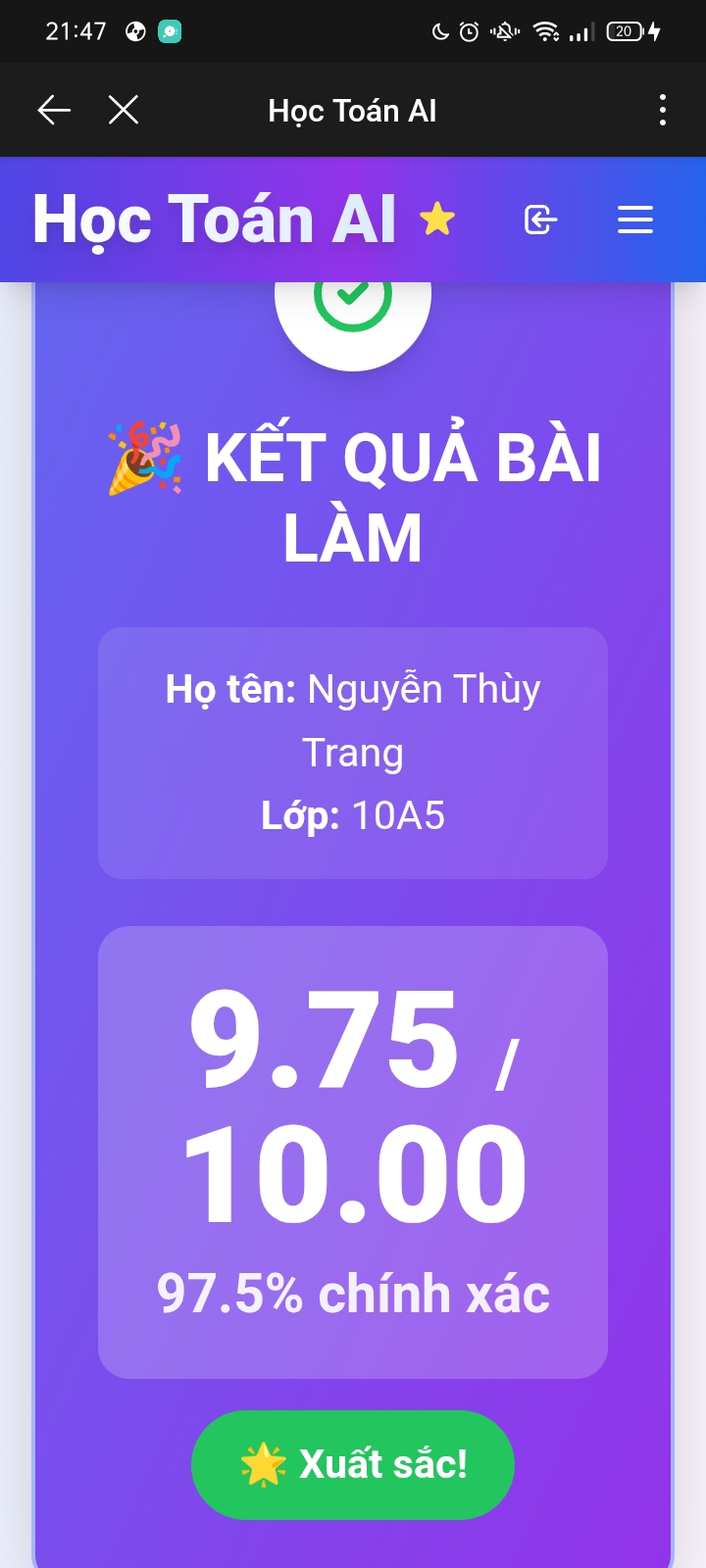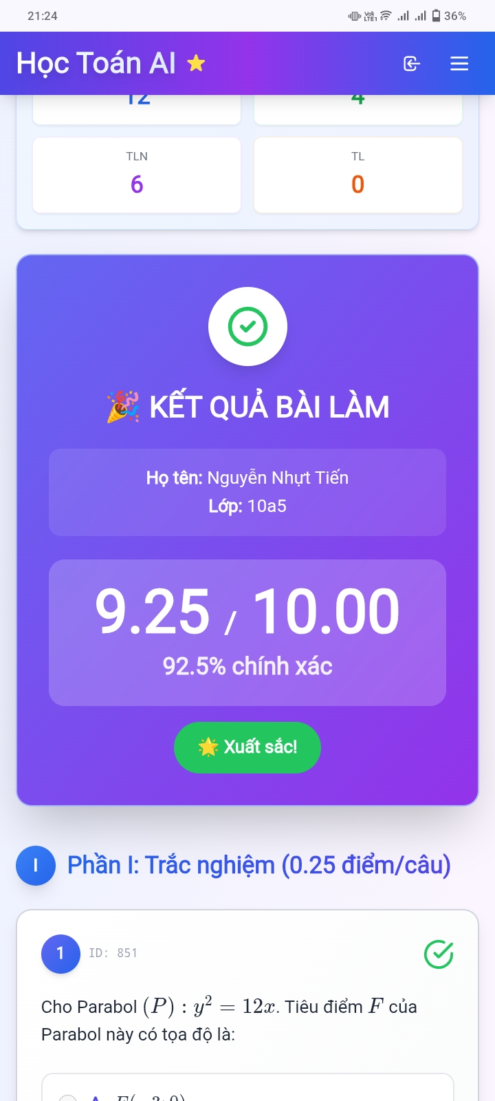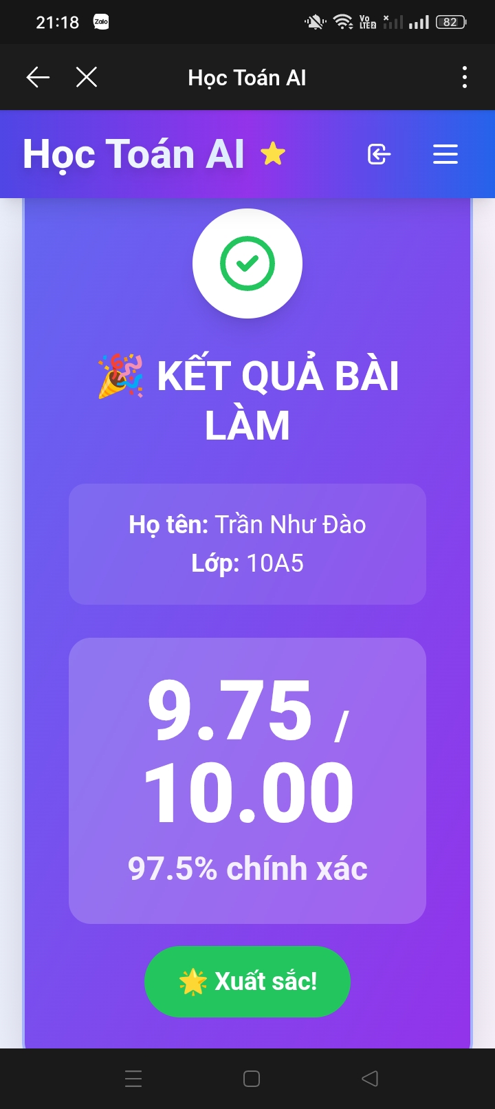 9. Kết quả Kiểm tra online Toán 12