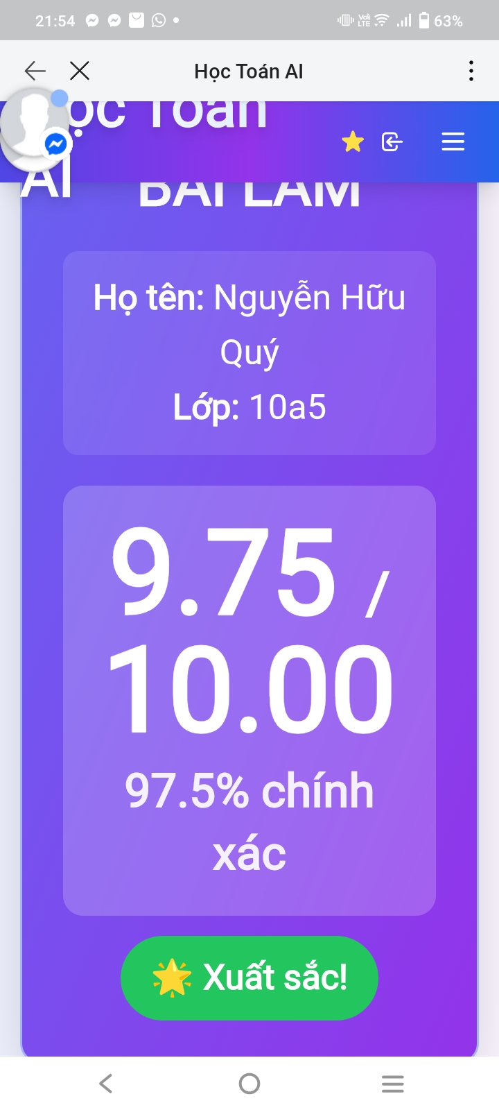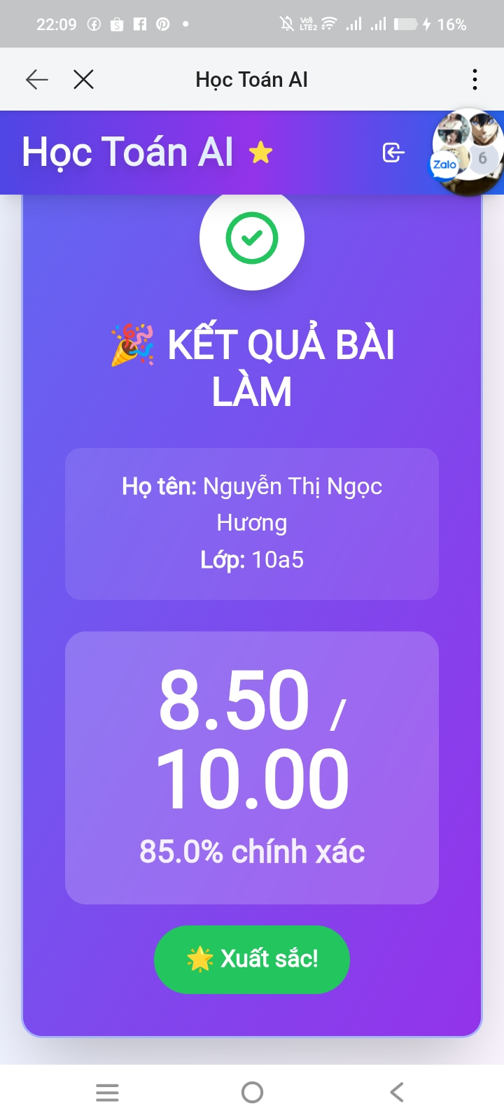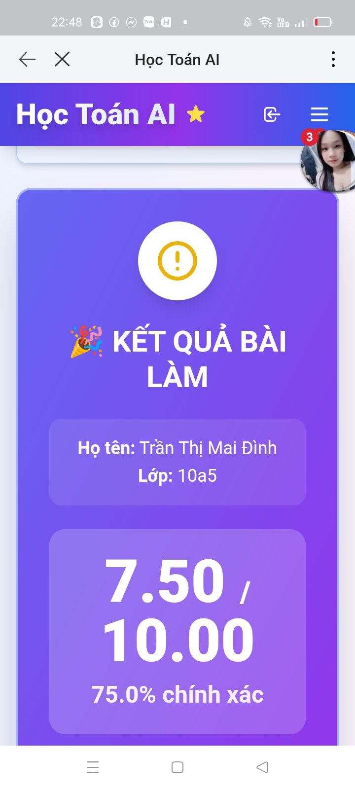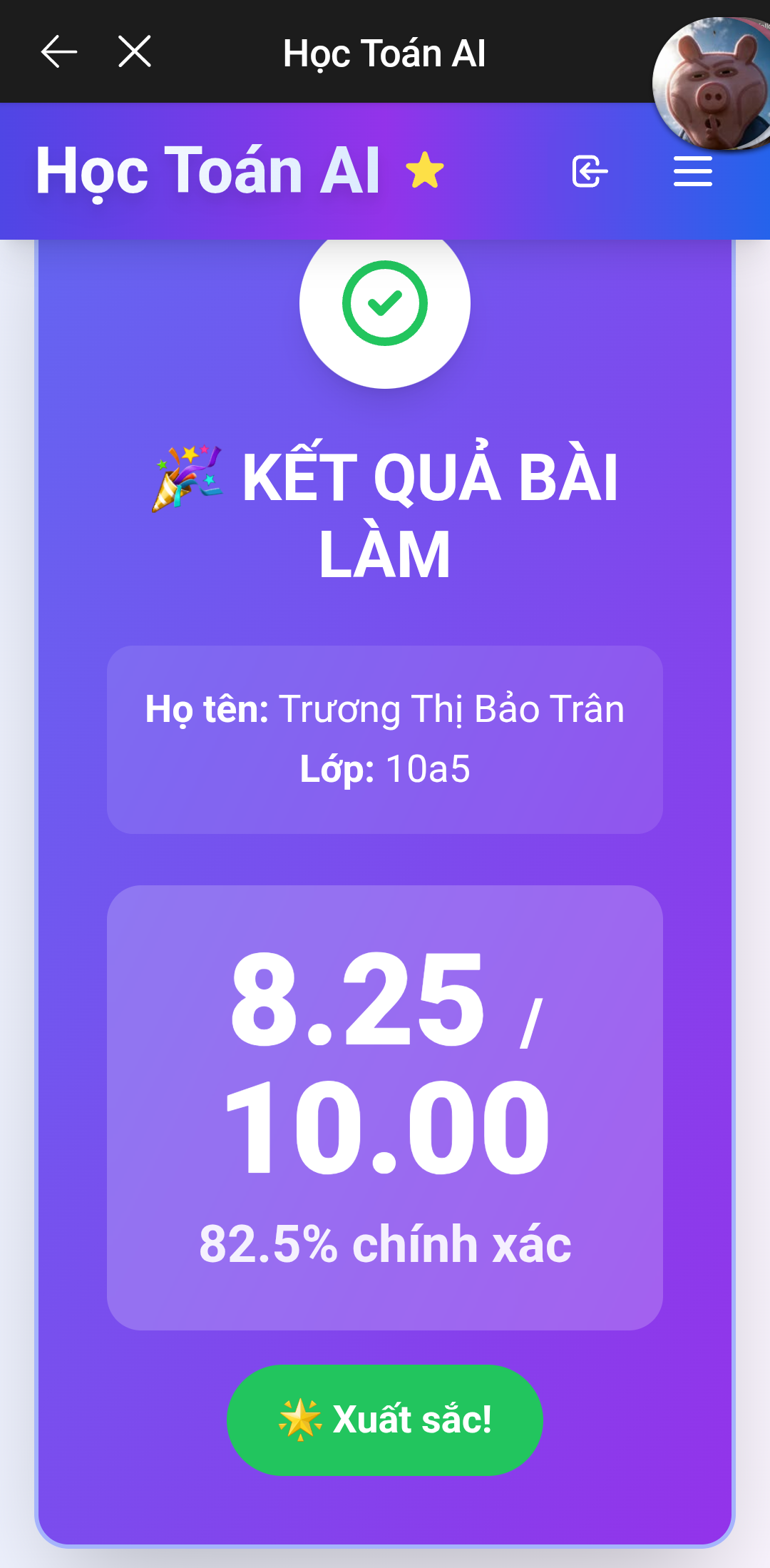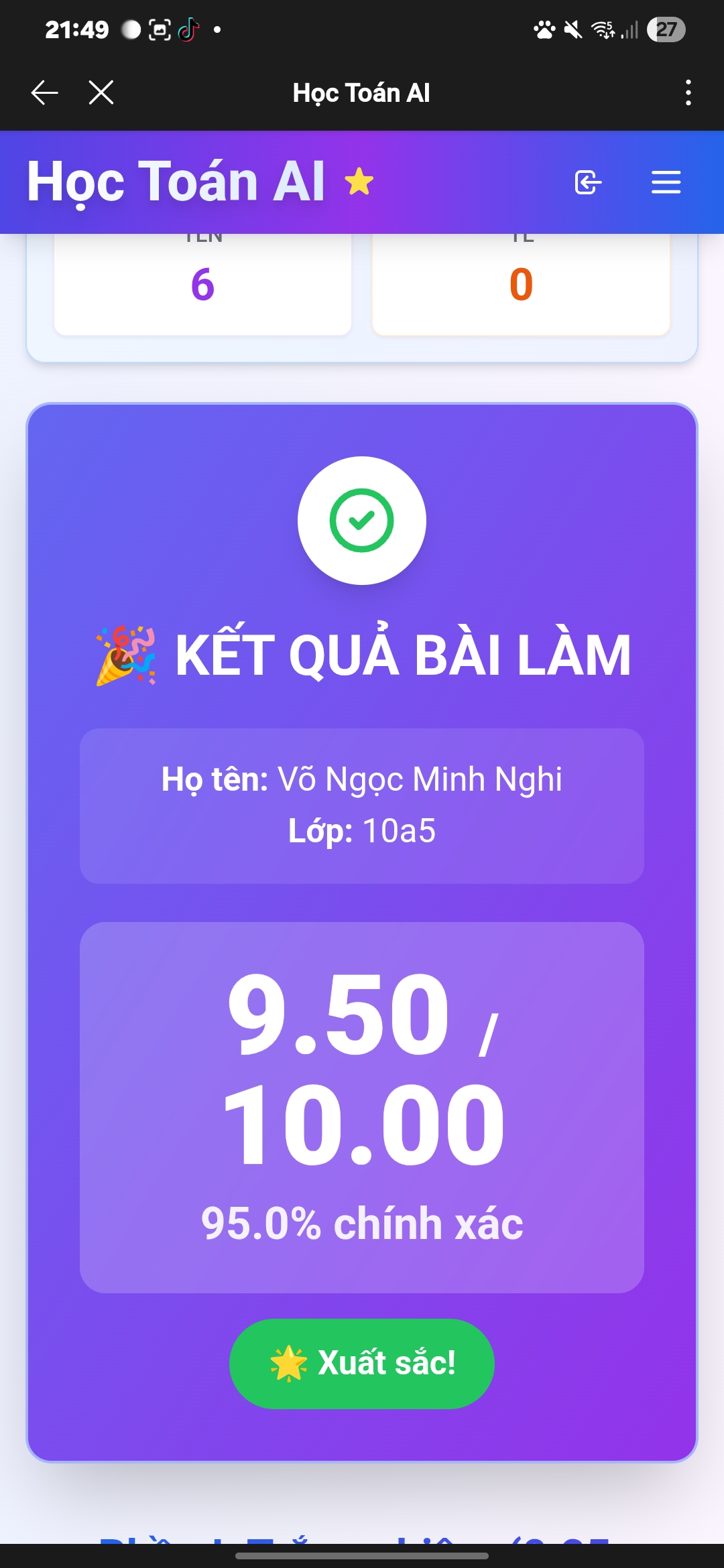 9. Kết quả Kiểm tra online Toán 12