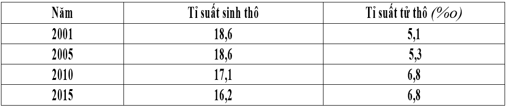 Câu 14. Trong giai đoạn 2001 – 2015, tỉ suất tử thô của nước ta