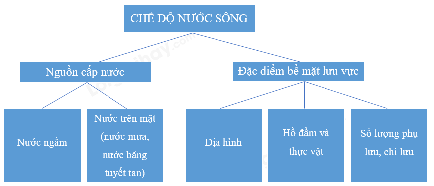 Nhớ lại các nhân tố ảnh hưởng đến chế độ nước sông để lập sơ đồ: