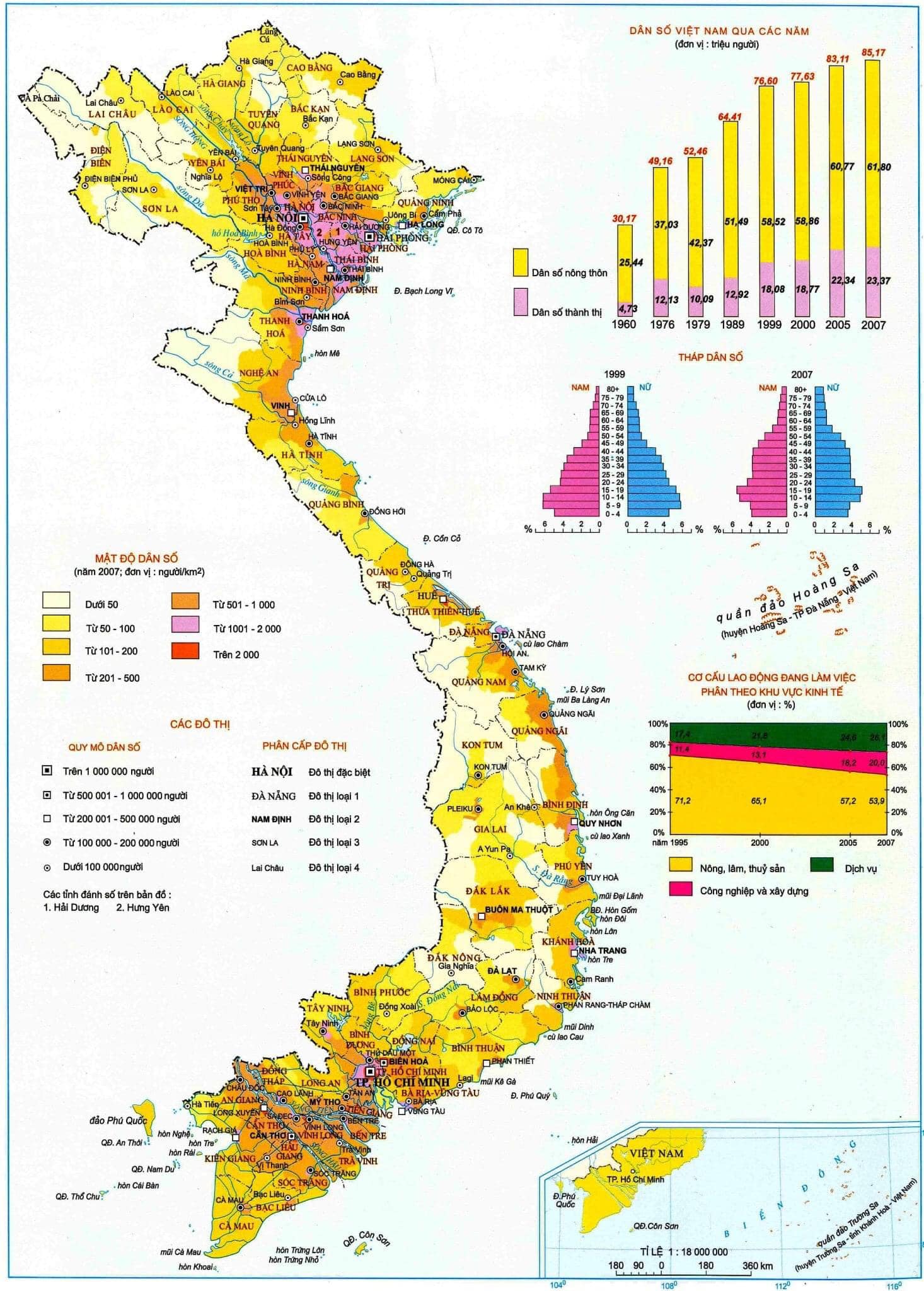 Bản đồ dân số Việt Nam – Atlat Địa lí Việt Nam trang 15 (Xuất bản năm 2016)