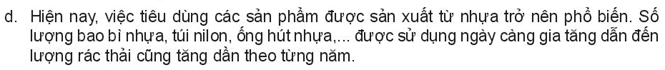 1. Theo em, hoạt động tiêu dùng nêu trên có ảnh hưởng đến đời sống xã hội là: Rác thải nhựa khó phân hủy, không thể phân hủy tăng dần theo từng năm dẫn đến ô nhiêm môi trường.