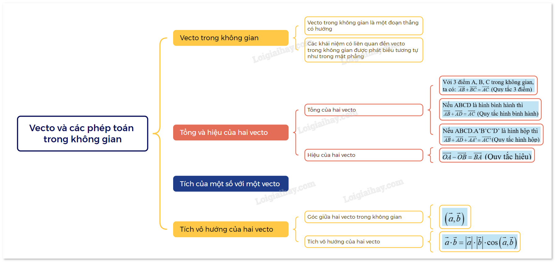 Sơ đồ tư duy Vectơ và các phép toán trong không gian