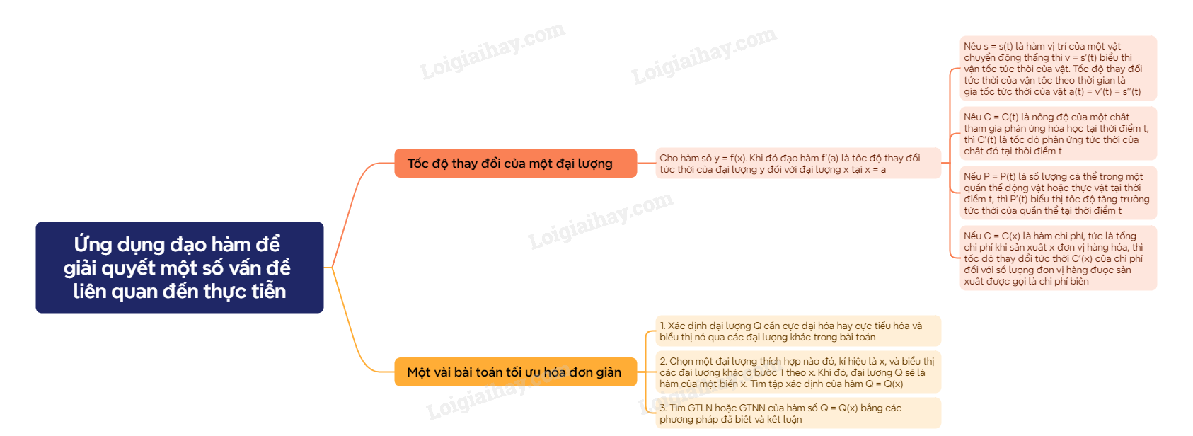 Sơ đồ tư duy Ứng dụng đạo hàm để giải quyết một số vấn đề liên quan đến thực tiễn