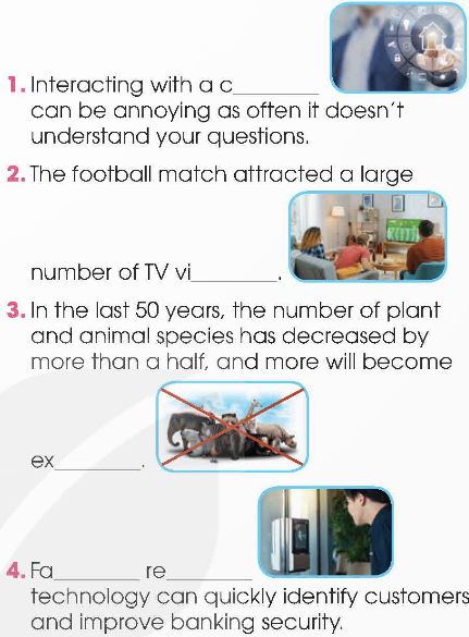 (Những chữ cái còn thiếu là gì? Hoàn thành các câu bằng cách sử dụng hình ảnh để giúp bạn.)