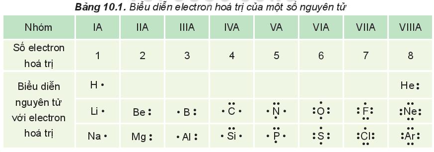 Các electron hóa trị của nguyên tử một nguyên tố được quy ước biểu diễn bằng các dấu chấm đặt xung quanh kí hiệu nguyên tố.