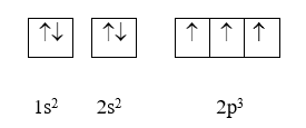 Hai ô orbital 1s và 2s có đủ 2 electron được biểu diễn bằng hai mũi tên ngược chiều nhau (nguyên lí Pauli). 3 electron còn lại được sắp xếp vào 3 orbital 2p bằng 3 mũi tên đi lên để số electron độc thân là tối đa (quy tắc Hund).