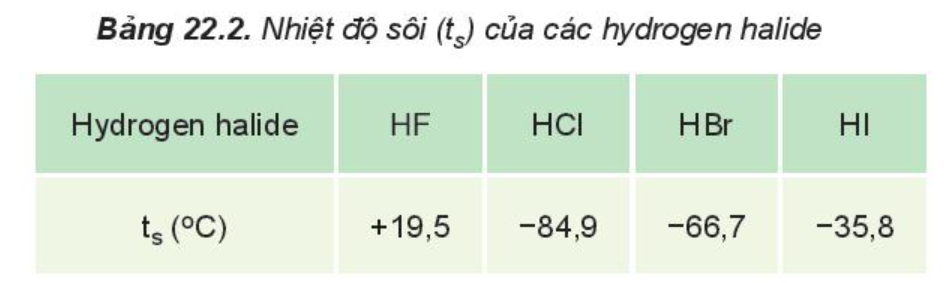 – Nhiệt độ sôi của các hydrogen halide
