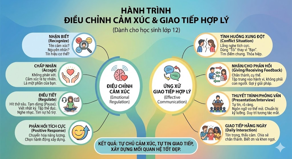 - Điều chỉnh được cảm xúc của bản thân và ứng xử hợp lí trong những tình huống giao tiếp khác nhau.