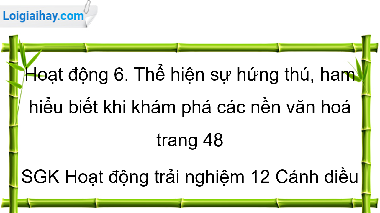 Lựa chọn một khía cạnh văn hoá mà em hứng thú và thực hiện khám phá.