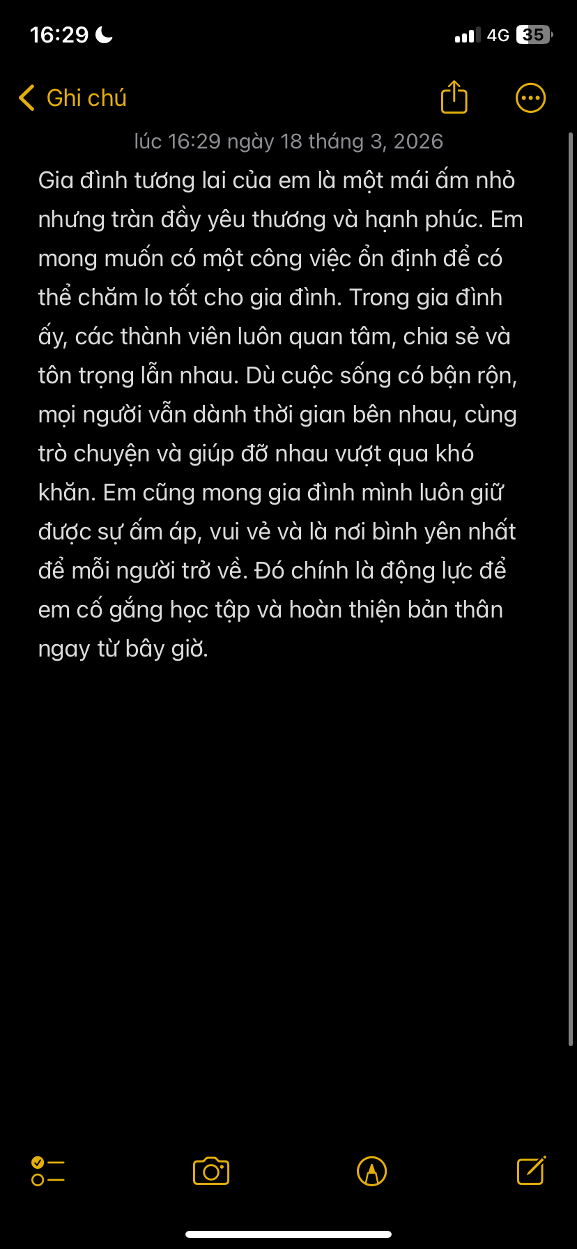 Trong tương lai, em mong mình sẽ có một gia đình nhỏ nhưng ấm áp và hạnh phúc. Gia đình đó không cần quá giàu có, chỉ cần luôn tràn đầy tiếng cười và sự yêu thương.