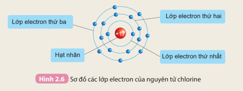2. Số electron trên từng lớp ở vỏ nguyên tử chlorine là số quả cầu trên các đường tròn
