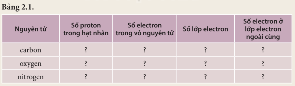 – Các nguyên tử carbon, nitrogen, oxygen đều có 2 lớp electron