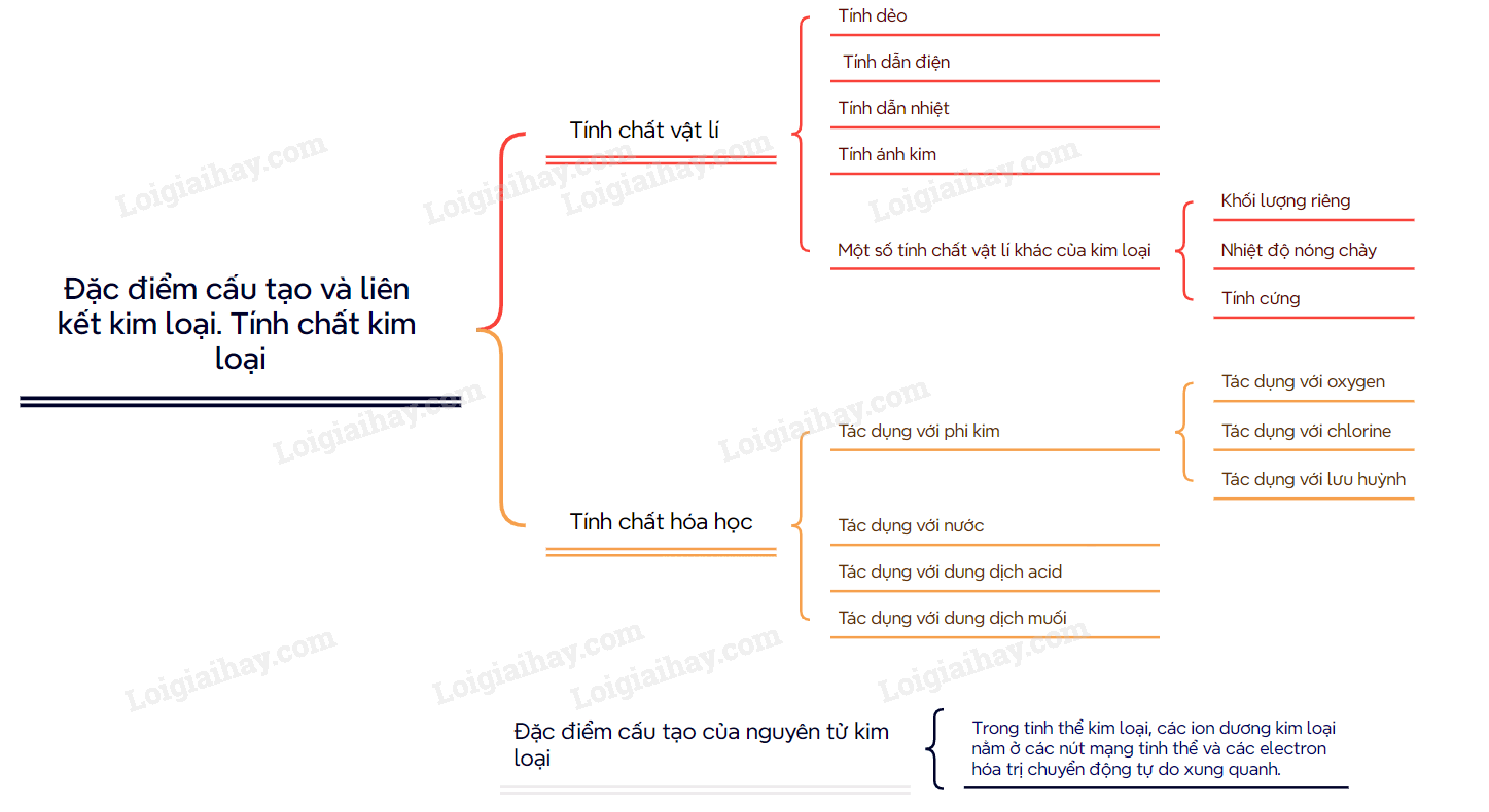 Sơ đồ tư duy Đặc điểm cấu tạo và liên kết kim loại. Tính chất kim loại
