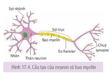 – Sợi trục: đầu tận cùng phân thành nhiều nhánh và đầu mỗi nhánh phình lên tạo thành chùy synapse. Nhiều sợi trục có thêm bao myelin