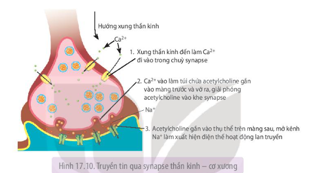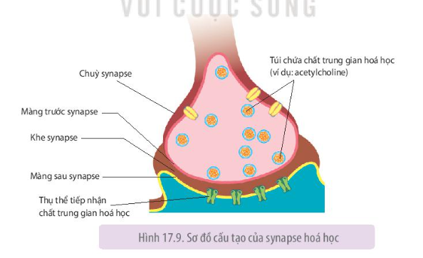Câu hỏi 1 trang 105 Sinh học 11: Quan sát hình 17.9, 17.10 và cho biết: Thông tin dưới dạng xung thần kinh được neuron chuyển qua synapse hóa học sang tế bào khác như thế nào?