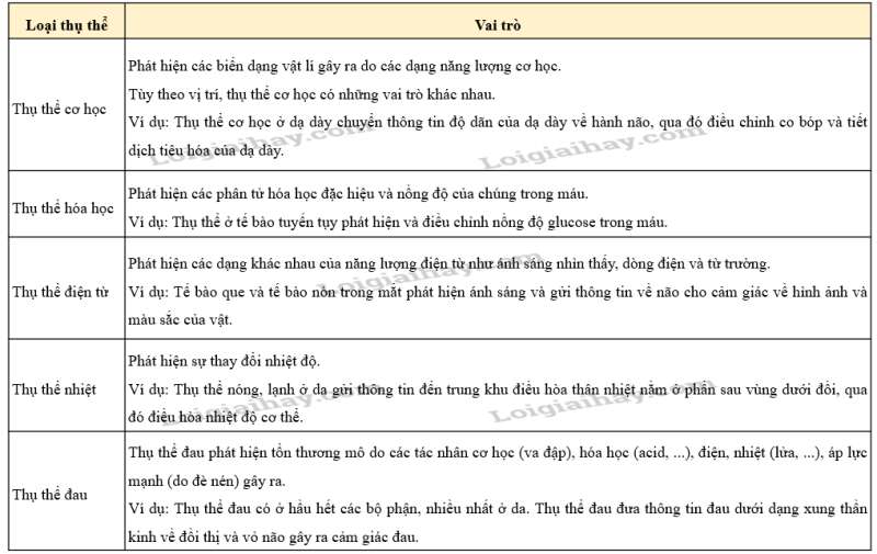 Các loại thụ thể cảm giác và vai trò của chúng: