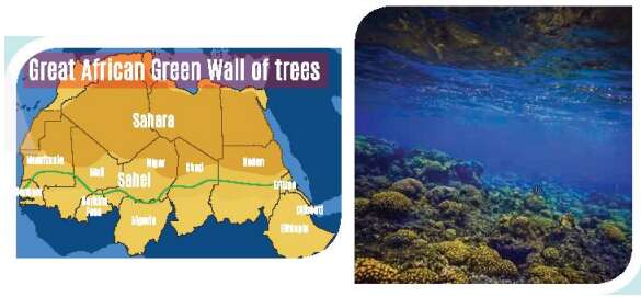 1. coral reef = a line of hard rock formed by coral found in warm sea water