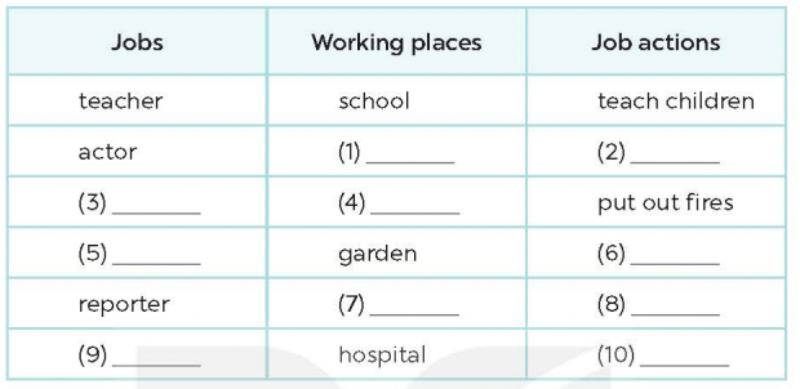 (Hoàn thành bảng về công việc.)
