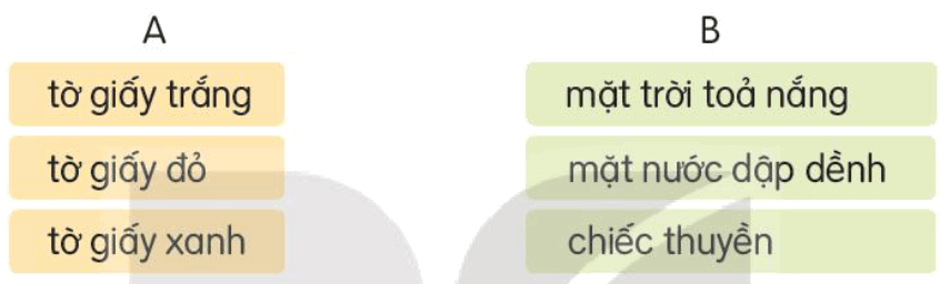 Tiếng Việt lớp 3 Tập 1 trang 61 Câu 2: Từ các tờ giấy, cô giáo đã làm ra những gì? (ghép từ ngữ ở cột A với từ ngữ phù hợp ở cột B)