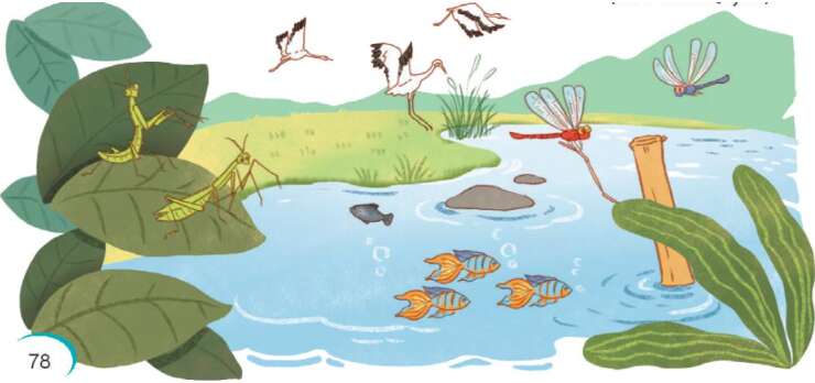 Mùa xuân, ngày nào cũng là ngày hội. Muôn loài vật trên đồng lũ lượt kéo nhau đi. Những anh chuồn ớt đỏ thắm như ngọn lửa. Những cô chuồn chuồn kim nhịn ăn để thân hình mảnh dẻ, mắt to, mình nhỏ xíu, thướt tha bay lượn. Các chú bọ ngựa vung gươm tập múa võ trên những chiếc lá to. Các ả cánh cam diêm dúa, các chị cào cào xoè áo lụa đỏm dáng,… Đạo mạo như bác giang, bác dẽ cũng vui vẻ dạo chơi trên bờ đầm.