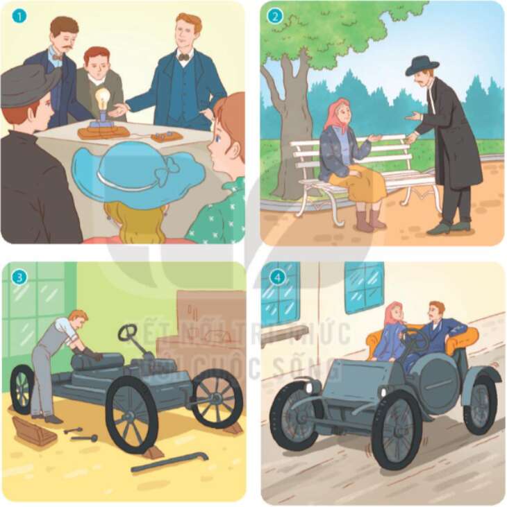 4. Từ lần gặp bà cụ, Ê – đi- xơn miệt mài với công việc chế tạo xe điện  và đã thành công. Hôm chạy thử xe điện, người ta xếp hàng dài để mua vé. Ê-đi-xơn mời bà cụ dạo nọ đi chuyến đầu tiên. Đến ga, ông bảo :