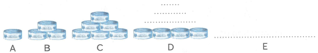 – Hình E gồm 5 tầng, bốn tầng trên là các hộp như hình D, tầng dưới cùng gồm 5 hộp. Vậy hình E có 15 hộp.