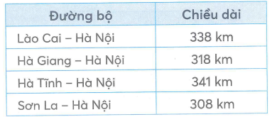 Bảng bên cho biết chiều dài đường bộ từ một số tỉnh đến Thủ đô Hà Nội:
