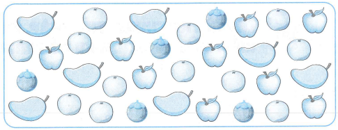 Táo: …quả;            Cam: …..quả;        Xoài: ….quả;         Măng cụt: ….quả