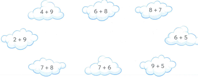9 + 4 = …. 8 + 5 = ….. 6 + 7 = …… 9 + 9 = …..