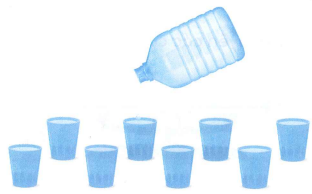 a) Rót hết nước từ bình ra được đầy các cốc như hình dưới đây.