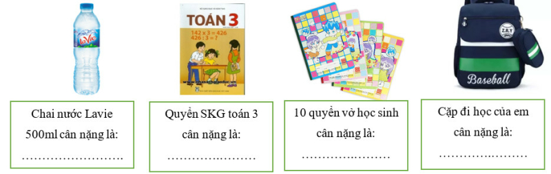 Bài 4: Dùng cân để cân các đồ vật sau: