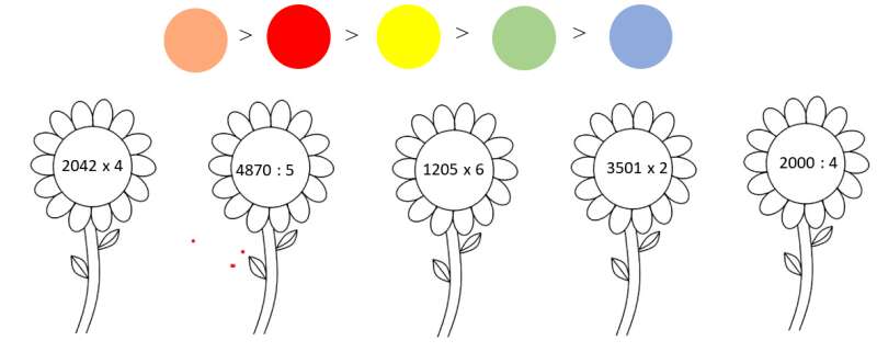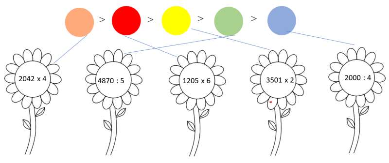 Bài 1. Hãy tô những bông hoa có chứa kết quả tương ứng với các màu dưới đây.