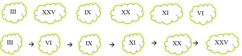 Bài 4. Hãy sắp xếp các số La Mã theo thứ tự từ bé đến lớn.