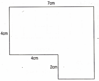 Chia hình trên thành 2 hình chữ nhật 1 và 2. Hình chữ nhật 1 có chiều dài 7 cm, chiều rộng 4cm. Hình chữ nhật thứ hai có chiều rộng 2cm và chiều dài là :