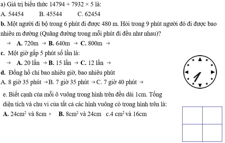 Bài 2. Khoanh vào chữ cái đặt trước đáp án đúng