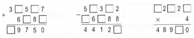 12467 + 329                 5000 – 35                       14058 × 4                         27143 : 3