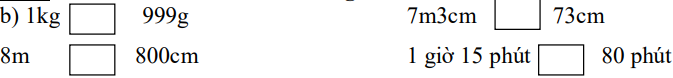 Bài 3: Điền dấu >, <, = vào chỗ trống: