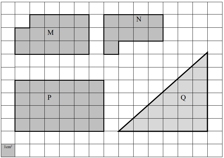 Diện tích hình Q bằng diện tích hình chữ nhật lớn trừ đi diện tích hình vuông ( được tô màu vàng)