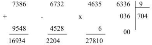 7386 + 9548 6732 – 4528 4635 x 6 6336 : 9