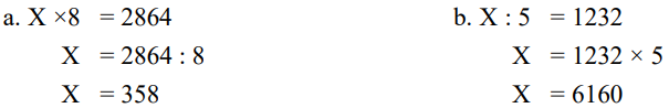 a/. X × 8 = 2864 b/. X : 5 = 1232
