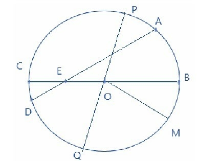 c, Các đường kính của hình tròn đã cho là: CB; DA; PQ
