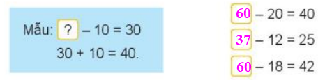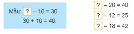 Giải Toán lớp 3 Tập 1 trang 11 Bài 1: a) Tìm số bị trừ (theo mẫu).