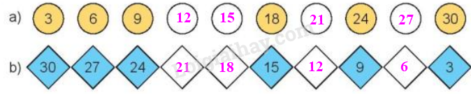 Đếm thêm 3 đơn vị hoặc đếm lùi 3 đơn vị rồi viết số còn thiếu vào ô trống.