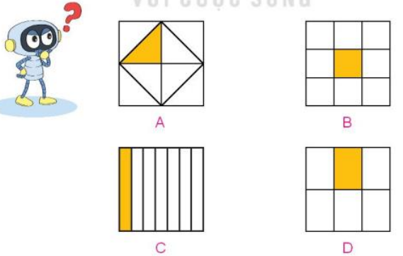 – Đếm số phần bằng nhau trong mỗi hình rồi chia cho 8.