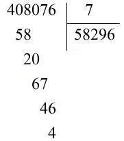 Vậy 408 076 : 7 = 58 296 (dư 4)