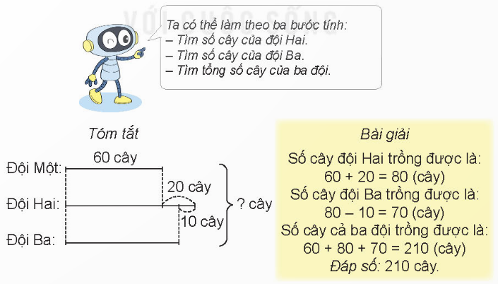 – Tổng số quả = số quả sầu riêng + số quả bưởi + số quả xoài.