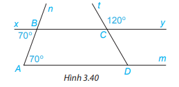 Bài 3.20 trang 54 Toán lớp 7: Cho Hình 3.42, biết rằng Ax//Dy, . Tính số đo các góc ADC và ABC.